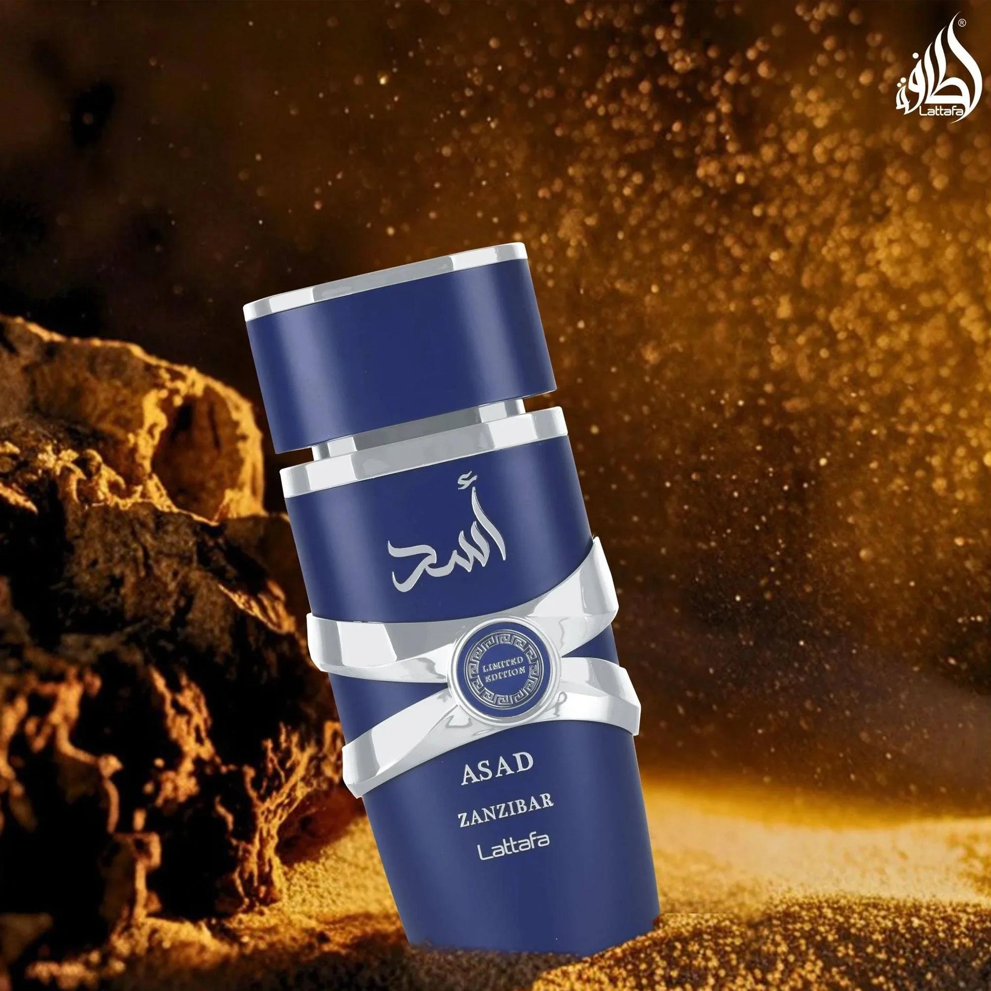 Discover Asad Zanzibar Limited Edition, a new rendition of the original Asad Zanzibar thaTonka Bean, Amber, Cedarwood, and Sandalwoodt’s available for a limited time. The fragrance lures with it aromatic, amber character, boasting a blend of marine notes, soft lavender, and fiery pink pepper. The heart highlights its distinct character with spicy cinnamon, smooth cashmeran, and black soap. The blend nestles on a robust bedding of woods including cedarwood and sandalwood, while the duo of tonka bean and amber provide an enveloping warmth to the composition.