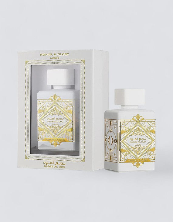 Badee Al Oud Honor and Glory by Lattafa is an exceptional Eau de Parfum that combines the richness of oud with refined floral and oriental notes, making it the perfect fragrance for those who appreciate opulence and sophistication. This perfume is designed for both men and women who want a captivating and long-lasting fragrance that speaks to their elegance and charisma. Perfect for special occasions, formal events, or evening wear, Badee Al Oud Honor and Glory leaves a powerful impression wherever you go.