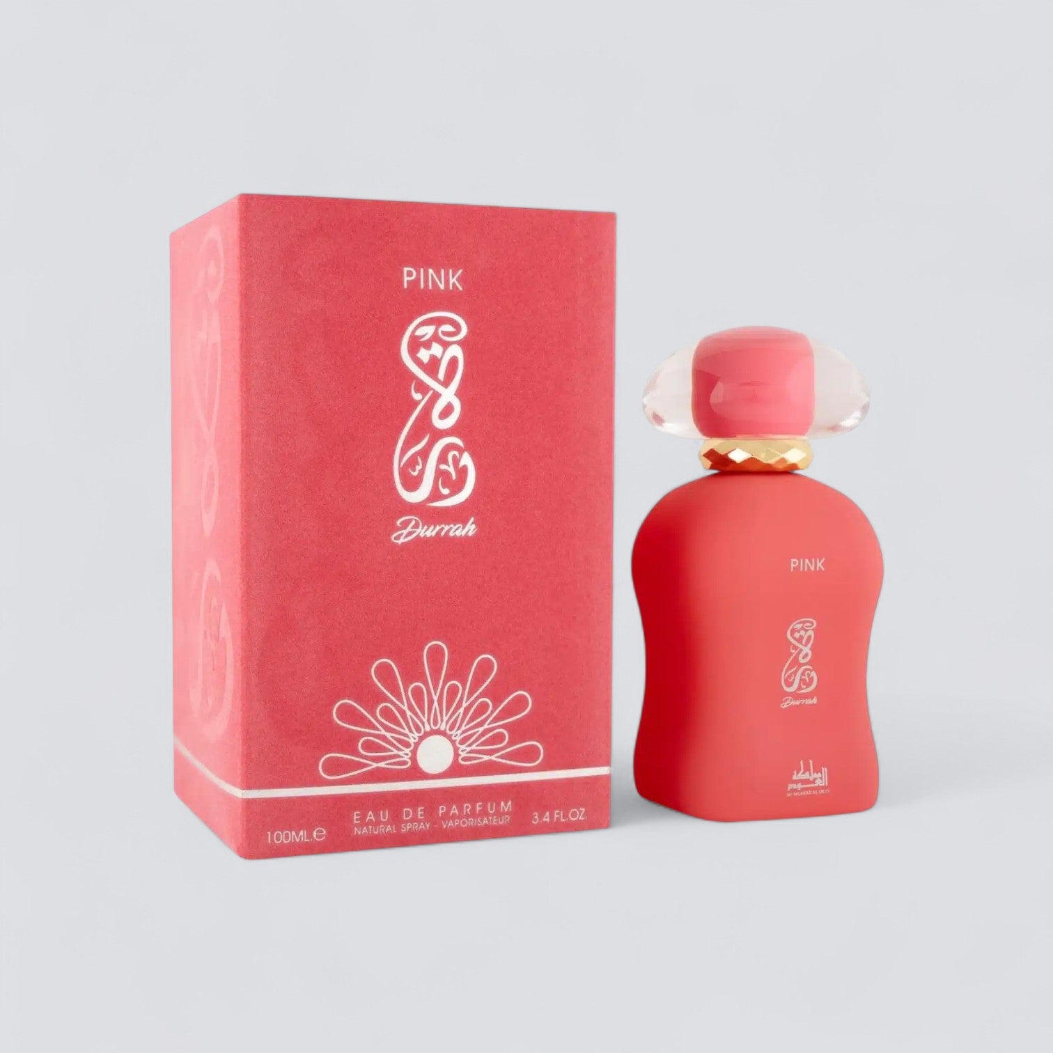 Experience the enchanting allure of Durrah Pink Perfume, an exquisite Eau De Parfum created by Mamlakat Al Oud. This captivating fragrance seamlessly blends luscious fruity notes with indulgent gourmand accords and warm, sensual base notes, resulting in a scent that is both sweetly enticing and irresistibly sophisticated.