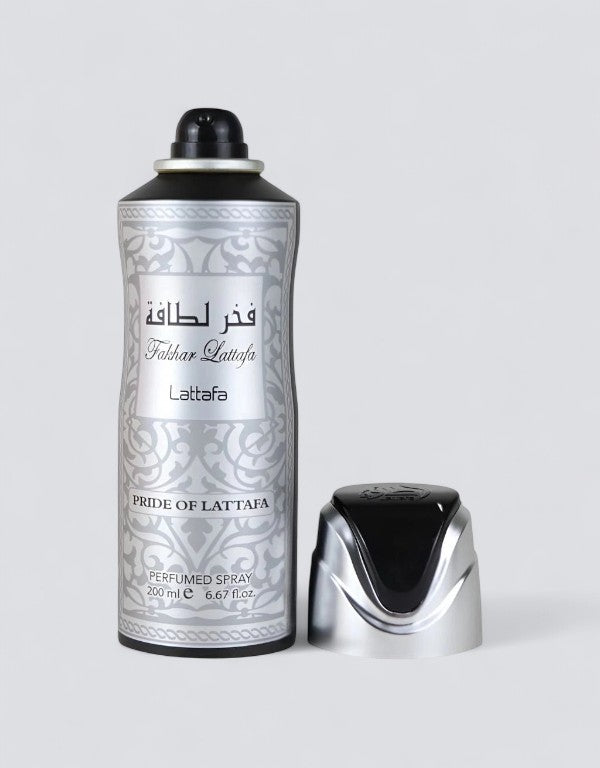 Fakhar Men Deodorant Spray by LattafaThis fragrance opens with the sweet, floral notes of silkwood blossom, brightened by mandarin orange and orange blossom. The heart reveals an alluring blend of night-blooming cereus and rich Bulgarian rose. As it settles, the base offers warmth with creamy vanilla, smooth sandalwood, and the cozy depth of tonka bean. Perfect for those who love a floral scent with a warm, elegant finish.Top Notes - Silkwood Blossom, Mandarin Orange, Orange BlossomHeart Notes - Night Blooming Cereus, Bulgarian RoseBase Notes - Vanilla, Sandalwood, Tonka Bean