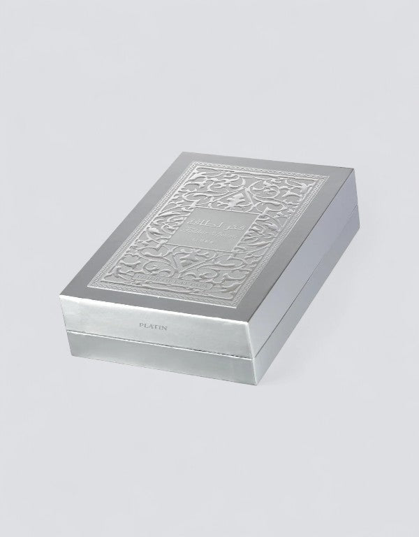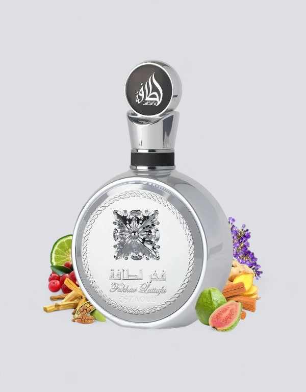 Fakhar Platin by Lattafa is a bold, expressive fragrance that effortlessly blends spicy freshness with exotic woods and smoky depth. The scent opens with a vibrant mix of bergamot, pink pepper, and cardamom, offering a bright and spicy kick that commands attention. As it settles, the heart introduces an unexpected twist—ginger and lavender balanced by the juicy sweetness of guava, creating a warm yet modern aromatic character.