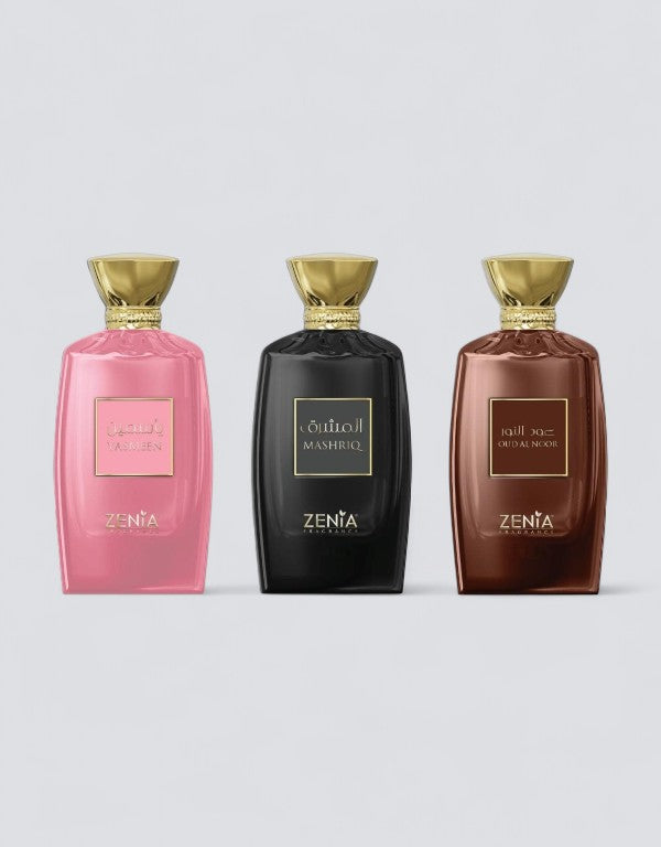 Discover a trio of elegance, warmth, and depth with the Floral Oud Bundle Pack by Zenia. This exclusive collection brings together three distinct fragrances—Yasmeen, Mashriq, and Oud Al Noor—each designed to capture a different facet of sophistication. Worn alone or layered together, they create a versatile wardrobe of scents for every mood and occasion.
