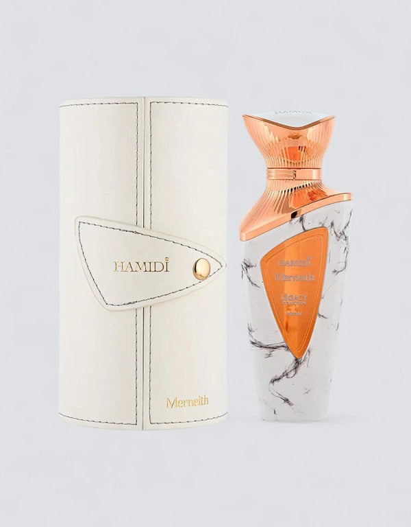 Experience the legacy with Hamidi's Merneith Eau De Parfum for men. This 100ml fragrance is a bold and sophisticated scent, perfect for the modern man. Its rich notes of musk and wood provide a long-lasting aroma, leaving you feeling confident and stylish all day. Elevate your fragrance game with Hamidi Legacy.