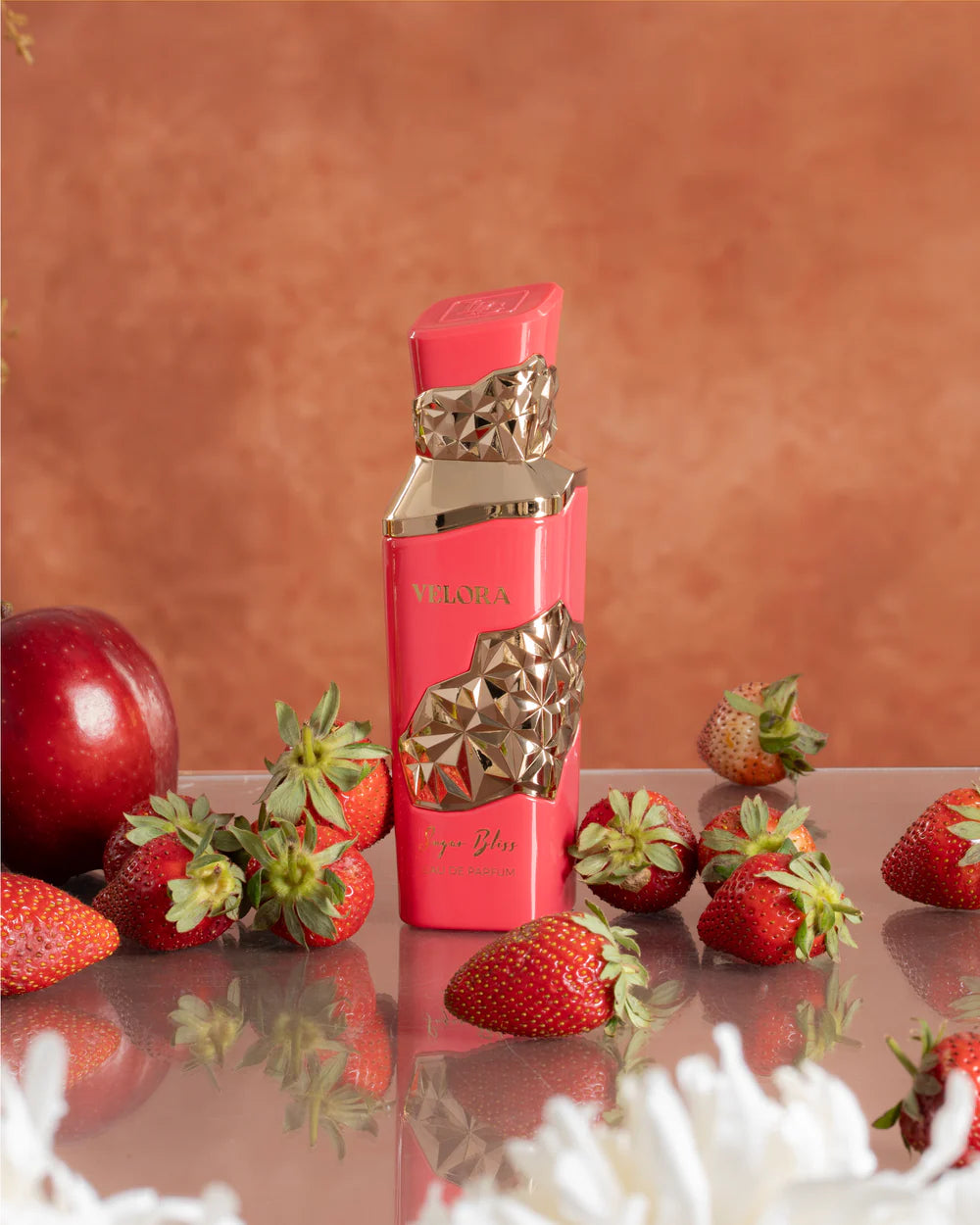 A fragrance that feels like pure indulgence. Velora Sugar Bliss is more than just a perfume—it's a scent that brings joy, warmth, and elegance. Designed for those who love a harmonious blend of fruity sweetness, floral charm, and musky warmth that lingers beautifully. It opens with a luscious and vibrant mix of pineapple, strawberry, apple, and raspberry—playful, juicy, and refreshingly bright.